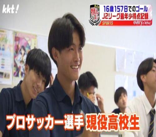 2024赛季,还是高中生的他升至一线队开启职业生涯,以16岁5个月05天打破了J2联赛最年轻进球纪录,一边读书一边踢职业在场上进球!